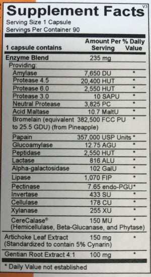 Digestive Support contains a full spectrum of enzymes specifically formulated for the unique needs of vegetarians including lipase, amylase, lactase, CereCalase® and protease. Gentian root, a traditional bitter, and artichoke, a natural choleretic, are also included to support the body’s natural production of enzymes and bile.