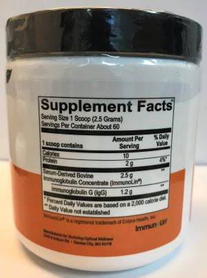 GI Immune Support is the only purified, dairy-free source of immunoglobulin G (IgG) available as a dietary supplement. Serum-derived bovine immunoglobulins (SBI) provide the highest IgG concentration available for GI and immune challenges where allergens are a significant concern. Pure IgG helps to maintain a healthy intestinal immune system by binding a broad range of microbes and toxins within the gut lumen. GI Immune Support provides 1,200 mg IgG in a one-scoop serving.