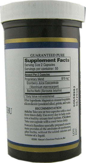 Each capsule contains a blend of Cranberry juice conc and Buchu herb (870mg)